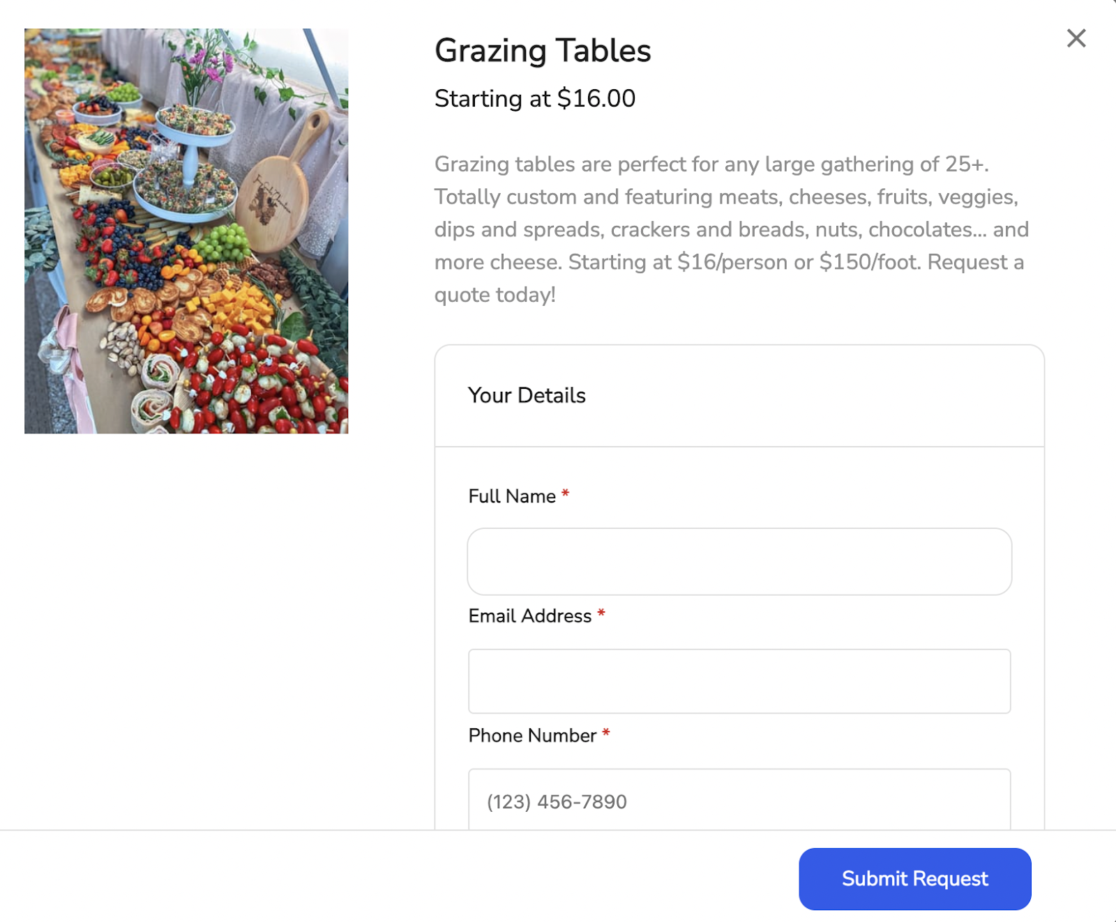 So what exactly should be in a charcuterie board order form? We often see our owners capture the following information at minimum:
