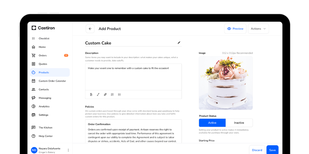 Castiron has made my cottage bakery shine, and my business easy to manage. As a platform they care about my business as much as I do.